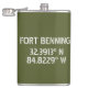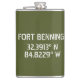 Latitud- och longitud-karta-koordinater för Fort Benning - Columbus, Georgia Vinyl-förpackad kolv har stencil stil-vita teckensnitt på arméns grönt-bakgrund.