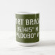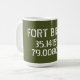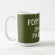 Kaffe mugg med koordinater för latitud och longitud karta för Fort Bragg, nära Fayetteville, North Carolina. Stencil stil, vitt teckensnitt på gröntens bakgrund i armén.
