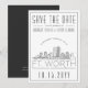 Fort Worth Bröllop Stilisert Stadssiluett Spara Da Inbjudningar