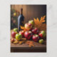 Fortfarande liv, höst löv med äpplen och flaska i vin.
