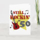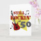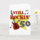 En cool rock 'n' roll-design med en elgitarr och orden "Fortfarande rockar vid 50". En fantastisk födelsedagspresent!