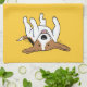 Rolig Beagletecknad hund som lägger på baksida med ben i luften. Denna gulliga dekorativa kökshandduk gör en fundersam inflyttnings- gåva eller helgdag som lagerför stufferen för en hundmamma, en hundpappa eller någon som älskar Beagles! BesökJenns världen för klotter för themed hem- dekor för även mer original- hund aveln och djurälskare planlägger.