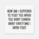 För sarkasmen älskare i oss alla. Kolla in den här vitsen "Hur kan jag lita på dig om du Behållor springa bort varje gång jag sliter dig?"-designen på kläder och presenter.