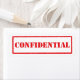 Konfidentiell röd och vit stämplad etikett.