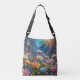 Denna förtrollande crossbody-väska har en fantastisk konst av färgrika blommor på en lugn äng i gryningen. Perfekt för att lägga till en färgklick och elegans till vilken outfit som helst, kommer denna väska säkert att vända på huvudet och skapa konversation. En perfekt present till alla som uppskattar naturinspirerad konst och vill ha med sig en bit av den förtrollade ängen vart de än går.