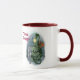 Dragon och Unicorn dekorerar en Julgran! Fantastical Mugg till jul! Art Copyright till Erin Cooper
