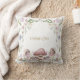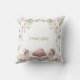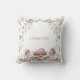 En magisk böld, matad vattenfärg dekorativ kudde för en liten flickas rum, med en förtrollad trädgårdsmiljö med blommigtar och svampar.