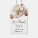 Ett vackert, rustiskt favärde i rikens varma fallområden, bröllop-designen fångar kärnan av ett romantiskt höst firande med dess exquisita blandning av färg med jordton och känslig blommigt inslag. Paletten i färg är en harmonisk blandning av mjuk elfenbensbeige, varm rost och jordbrun. Dessa färg kom tillsammans för att skapa en varm och inbjudande atmosfär för din speciella dag, som påminner om fallsäsongen. Anpassa textmallen med namn och bröllop eller annan önskad text. De här märkrna är designade för att användas på bröllopsfavörer eller andra semesterresor vid bröllop, möhippa, förlovningsfest eller andra speciella firande.