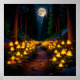 En serenafton-skog i väg hyr blommor under måndagsljus och skapar en förtjusande atmosfär av lugn och magi fullt.