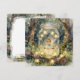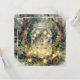 Ett vackert sagotema tomt brevkort. Den älskvärda illustrationen har en sagoflicka som svingar på en magisk gunga inuti en murarbytta i en förtrollad trädgård i skogen. Sagoljus pryder träden och gungan.