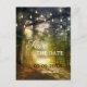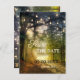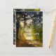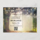 Spara datum postkort med en magiskt upplyst stig i en förtrollad skog med festliga strängljus. På baksidan finns en QR-kod mall.