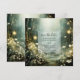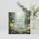 En eterisk skogspromenad med blommor och träd presenteras i denna magiska förtrollade sälggröna bröllopsinbjudan med lysande ljus.