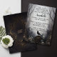 Denna mörka och stämningsfulla förtrollade skogdesign har en fantasifull fågel och blommor och fauna för att spegla en romantisk känsla.