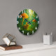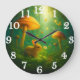 Whimsical skogsklocka med en nyfiken gul kanin bland livfulla svampar med fladdrande fjärilar. Vita siffror på frodig grön bakgrund skapar saga magi - perfekt för barnkammare eller fantasifulla rum.
