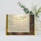 Gå in i en saga med detta förtrollande svarsbrev för trädgårdsgrind. Med en utsmyckad gyllene dörr omgiven av blommande blommor och magisk belysning sätter detta svarsbrev tonen för ett romantiskt och elegant. Den matchande baksidans design frammanar en majestätisk trädgårdsbåge, perfekt för ett sagoboksbröllop. Helt anpassningsbart för din drömdag.