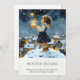 Träd in i årstidens magi med detta Förtrollade Vinterkort. Det har en drömlik nattlig scen med ett barn i snön som fångar fladdrande lysande stjärnor i natten. Designen fångar vinterns under och högtidernas glädje i en tidlös, saga-inspirerad stil. Perfekt för att skicka varma hälsningar till familj och vänner, detta kort blandar elegans och förtrollning och gör det till en vacker souvenir för jul eller någon annan vinterfirande. Tillgängligt i tryck, som digital nedladdning eller båda.