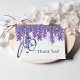 Skapa speciella lyckliga stämningar för alltid från din vårbröllop med denna wisteriavinstock som blomblad faller från övre kanten och violett cykel till vänster. En speciell "Tack"-text.