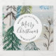 Klassiska julklistermärken med typografi av personligen över en handmålad skogsbakgrund.