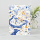 Det här charmiga julkortet visar en vacker illustration av en vintersby, komplett med snötäckta tak, pittoreska kyrkor och slingrande isiga stigar. Scenen fångar den fridfulla skönheten hos en tyst vinterdag, med ömtåliga träd, mjuka kullar och en mysig byatmosfär. Perfekt för att skicka varma julhälsningar, ger det här kortet en touch av säsongens magi till vänner och nära och kära.