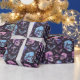 Förvandla dina gåvor till kusliga förtrollningar med Förtrollande lila dödskallar fladdermöss och kors presentpapper. Med en mystisk design av dödskallar, fladdermöss och kors på en mörk bakgrund, perfekt för en spöklik överraskning.