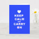 Keep Calm and Carry On i Pop Art-stil. Blå bakgrund.
