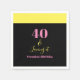 These 40th birthday napkins set the theme for all party events. The design features a yellow top with a black background alongside a celebration message in the middle. Feel free to personalize age and name to your choice.