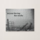 Steg genom grind och till väg som leder genom dimman och behållan och går ... tydlighet finns bara på andra sidan. 8 x 10-tums pussel med 110 delar.