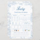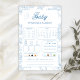 Redo för några gigglar och gissningar? Vår charming Himmel Blue Butterfly Blommigt Sketch Baby Predictions-spelkort är ett trevligt tillägg till alla duschar! Föreställ er att denna konstruktion flyter ner från ett drömt himmel, som bärs av en vismisk fjärilskarv för att samla in alla dessa söta uppgifter om baby. Gästerna kan förutsäga allt från öga färg till ankomstdatum och sedan lämna hjärtliga råd till de blivande föräldrarna. Med sina ömtåliga himmel blå blommigtar och mejerisketch stil är det perfekt för babyduschar eller gender avslöjar. Det är verkligen ett föregripande syfte!
