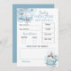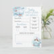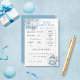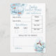 Blåvit och vit babybabydusch "förutsägelser och råd"-kort. Om du vill anpassa eller ändra texten klickar du på färg och typsnitt för att redigera designen. Här ingår födelsedatum, tid, vikt, längd, öga, färg, hår färg, likhet och plats för att lägga till ett meddelande om råd till de nya föräldrarna.