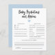 Dagens blåa hjärna-duschförutsägelser och rådgivningskort från baby. Texterna kan redigeras. Perfekt som ska spelas under duschen och som definitivt kommer att vara en underbar keepy! Kortet ber gästerna att förutsäga hur baby skulle se ut. Designad för en pojkes babydusch.