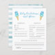 Roligt glasselaterade pojkens babyduschkort med baby-förutsägelser och avrådningskort med en illustration av glass i grönt- och mintglas på en våffelkon. Texterna kan redigeras. Perfekt som ska spelas under duschen och som definitivt kommer att vara en underbar keepy! Kortet ber gästerna att förutsäga hur baby skulle se ut.