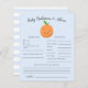 Ett kort för matematik för babyduschning i baby med en illustration av en orange. Texterna kan redigeras. Perfekt som ska spelas under duschen och som definitivt kommer att vara en underbar keepy! Kortet ber gästerna att förutsäga hur baby skulle se ut.