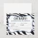 Skicka ut korten i barnduschen för ett spel om roligt som du får för alltid! Den har en svart och vit zebrisk kantad utskriftsbakgrund och marin blå accent.