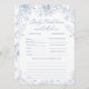 Firar din lilla med den här personligen blåduschförutsägelser och jaktkort! Perfekt för blå babyduschidéer och babyduschidéer. Den här charmutformningen är perfekt för en vår babydusch. Med känsliga blommigtar kompletterar den vår babyduschteman och vår-babyduschidéer på ett utmärkt sätt. Ett must-have for blommigt babyduschidéer, det här spelkortet tillför en roligt till din blå babydusch. Bläddra baby i blommtemat med det vackra tillägget till baby i bloomduschidéer pojken och babyduschteman för pojkar.