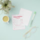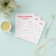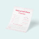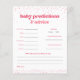Rosa lyssnar på Predictions-spel för babyskor. Baby Shower-rådgivning och förutsägelsespel i en söt rosa konfetterar hjärtetema med ett retrofont.