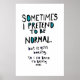 Ibland låtsas jag vara normal, men det blir tråkigt, så jag går tillbaka till att vara jag.