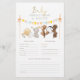 Ett baby-förutsägelse och ett rådgivningskort som matchar våra inbjudningar "Woodland Animals Band Parad Cute Baby Shower". Den här utformningen har ett marschband av trädjordjur som spelar alla typer av instrument, framför dem finns det boho som buntar i skuggor av grönt, gult, rosa, blått och orange. Det finns utrymme för gästerna att skriva sina födelseprognoser, liknandeprognoser och råd till de nya föräldrarna. Visa den samling som är länkad på den här sidan för samordning av produkter.
