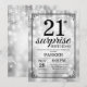 Förvåna den 21st födelsedaginbjudan med silver stränger ljus med silverglitterbakgrund. Försilvra födelsedagen. Vuxen födelsedag. Manar- eller kvinnaBday inbjudan. 13th 15th 16th 18th 20th 21st 30th 40th 50th 60th 70th 80th 90:e 100., något åldras. Behaga klickar "skräddarsy den" knäppas och använder vårt designverktyg för att ändra denna mall för mer ytterligare customization.