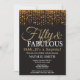Förvåna den 50th födelsedaginbjudan. Femtio och sagolikt. Svart och guld. Guld- glitter. Vuxen födelsedagsfest. För manar eller kvinnor. Behaga klickar "skräddarsy den" knäppas och använder vårt designverktyg för att ändra denna mall för mer ytterligare customization.