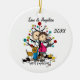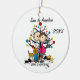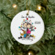 En gullig rolig keramisk prydnad som presenterar en förväntansfull stick figur, kopplar ihop, en stor brun hund, två små svarthundar, tre små katter, helgdagträd, och text, som läser "oss, förväntar!", med ett område kan du tillfoga dina namn eller ge i efternamn och tillfoga strömåret!