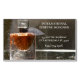 Bilden är ett klassiskt stil-glas parfym flaska med ljusgul färgad parfym inuti. Bakgrunden färg är en variation av grått-toner och parfym flaska sitter på glas som lätt har smälts in av vatten för visuell effekt. Teckensnittet är ljusstark färgad baby blue. Du kan anpassa det här affärskortet till kostym när ditt företag behöver det.