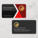 Cover features an arrow that is in forward movement, moving forward to your success. The grey and black layers play host to your prestigious name and job title with the business name at the base of the card. At the upper right corner is a faux gold global logo you can use.