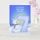 Bright winter joy fills this 7th birthday scene as a cheerful snowman shows off the tall snowy “7” sculpted just for your daughter’s big day. Soft, leaf-shaped trees frame the background, bringing a gentle seasonal touch to the artwork. The cool winter tones, playful textures, and warm expression create a sweet, memorable design perfect for foster son who adore snowy magic. A lovely choice for anyone searching for a whimsical winter 7th birthday card for a special boy.