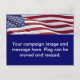 Röd, vit och blå amerikansk flagg patriotisk kampanj valmall template. Denna amerikanska flagg valkampanj template kan enkelt anpassas för ditt evenemang genom att helt enkelt välja "Anpassa den!"-knappen för att börja lägga till dina evenemangsupplysningar, foton, typsnitt, teckenstorlek och färg samt formulering. Observera att alla dekaler, kort och inbjudningsdesign du hittar på Zazzle är tryckta grafikbilder utan faktiska ädelstenar, band, upphöjda, präglade eller tillagda delar eller bitar.