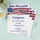 Röd, vit och blå amerikansk flagg patriotisk kampanj valmall template. Denna amerikanska flagg valkampanj template kan enkelt anpassas för ditt evenemang genom att helt enkelt välja "Anpassa den!" knappen för att börja lägga till dina evenemangsuppgifter, foton, typsnitt, teckenstorlek och färg samt formulering. Observera att alla dekaler, kort och inbjudningsdesign du hittar på Zazzle är tryckta grafik med inga faktiska juveler, slingor, upphöjda, präglade eller tillagda delar eller bitar.
