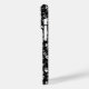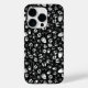 Bilden är en svartvit abstrakt mönster. Bakgrunden är ett lätt grått med ett schackrat mönster. Bakgrunden är svart linjer som skapar en kompakt, storartad utformning. Spridningen i hela skalet är vit, grått och svart fotavtryck av olika storlekar. Formerna är oregelbundna och verkar vara organiska till sin natur. Den övergripande effekten är komplex och djup. Mönster är synligt intressant.