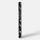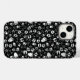 Bilden är en svartvit abstrakt mönster. Bakgrunden är ett lätt grått med ett schackrat mönster. Bakgrunden är svart linjer som skapar en kompakt, storartad utformning. Spridningen i hela skalet är vit, grått och svart fotavtryck av olika storlekar. Formerna är oregelbundna och verkar vara organiska till sin natur. Den övergripande effekten är komplex och djup. Mönster är synligt intressant.
