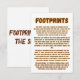 Med det här hälsningskortet visas en design som innehåller fotavtrycken i sandbölden i ett tygalavtrycksteckensnitt med maron färgad brev och gult kontur över en vit bakgrund i det här religionbaserade bönecitattemat plus ord "Fotavtryck i Sand" på baksidan. Utskriftsformat av hög kvalitet med färg på en 3,5-tums x 5-tums (porträtt) eller 5-tums x 3,5-tums (liggande) projektionsyta, pappert tillverkat och tryckt i USA.