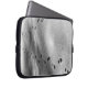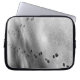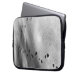 Vid dammning av färsk snö finns en svart körbana med varierande täthet. Två uppsättningar svarta startavtryck börjar sida vid sida i bildens överkant och skiljer sig åt när de närmar sig visningsprogrammet i det här lodrät, svartvita foton. En uppsättning spår går ut i det lämnat hörnet i grund medan den andra fotavtrycken går halvvägs ned på högerna av ram. Digitalt, svart och vitt foto. Copyright © 2010 Claire E. Skinner. Alla höger reserverade.