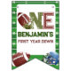 Upptäck din första fotbollsfödelsedag med den här söta milstolpen fotobuntning! Mönstras med vattenfärgen boll, hjälmet och söt typografi första året ner. Varje flagga-mall är redo till använda för att lägga till foton som du har plats för i fjorton olika foton. Låt oss fira babyens första födelsedag! Underbar för en fotbollsteman första födelsedagsfest för en pojke eller en flicka. Sök efter matchande objekt för fullständigt anpassade i min butik.